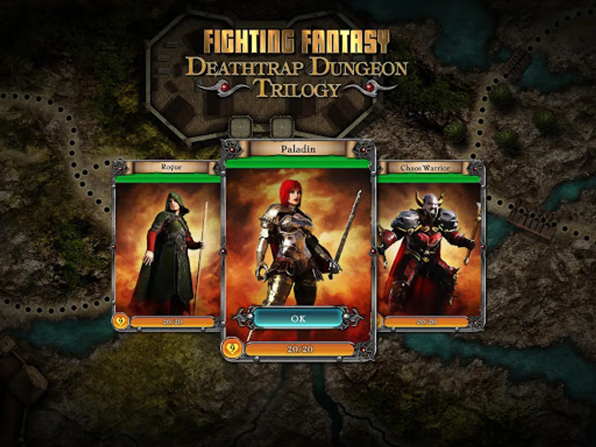 Play through three classic Fighting Fantasy gamebooks by author Ian Livingstone - Deathtrap Dungeon, Trial of Champions and Armies of Death.