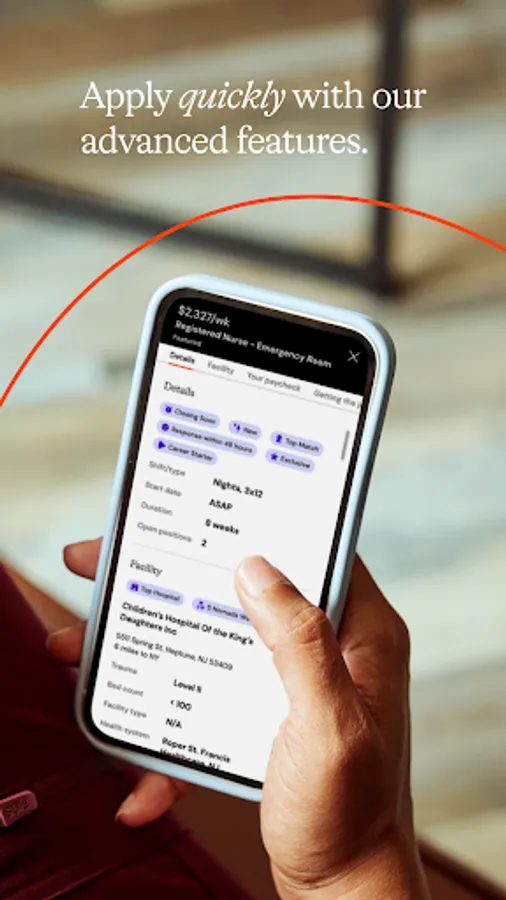 Not only can you search and apply for open travel healthcare positions from within the app, but you can also log your hours while on assignment and set up payment. If you accept an offer through Nomad, you’ll have access to a robust benefits package, including full healthcare coverage, 401(k) matching, malpractice insurance, and travel reimbursement, among other exciting features.