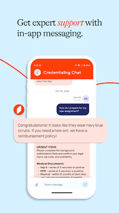 At any time during the application process, you can reach out via in-app messaging for support. A team of Nomad Navigators, our own healthcare industry experts, can help guide you through your placement by fielding questions, contacting your facility, and offering personalized solutions. Once you’re connected to a Navigator, you can chat with them from within the app, making it easy to communicate while on the go.