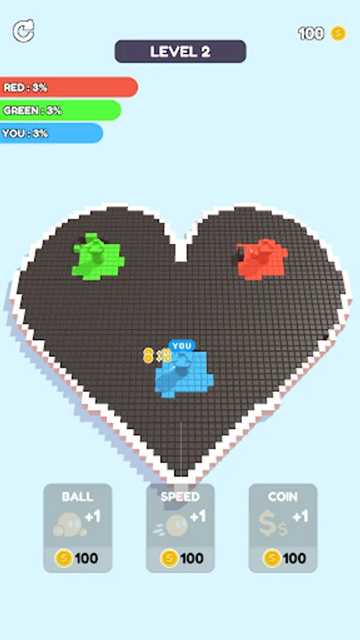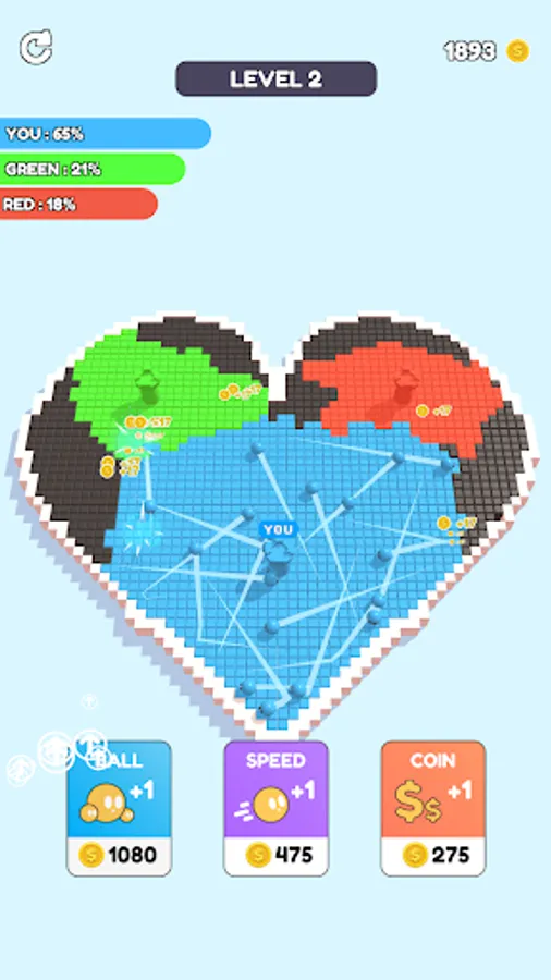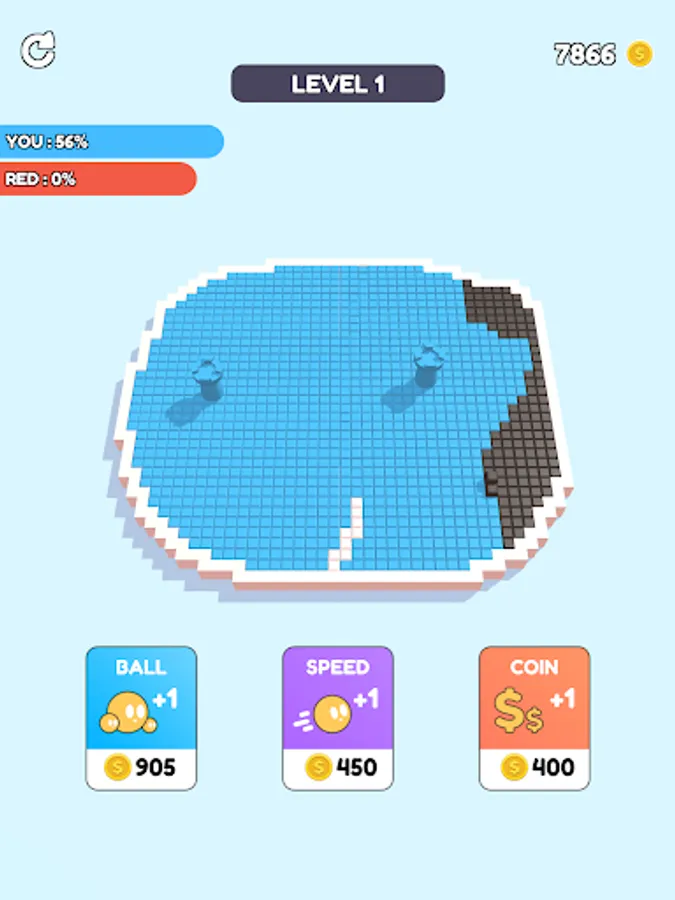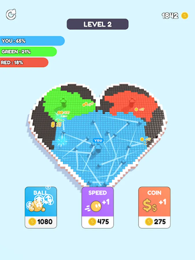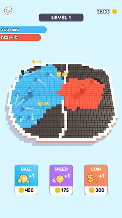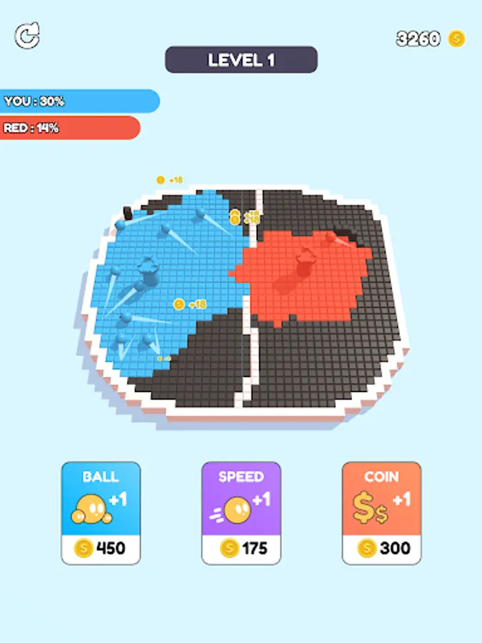 Play this new exciting strategy game where you can claim lands with bouncing balls. Increase their number and speed with the money you have looted from the enemy.
