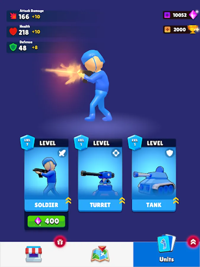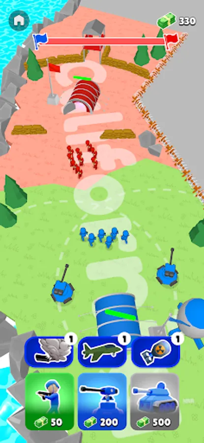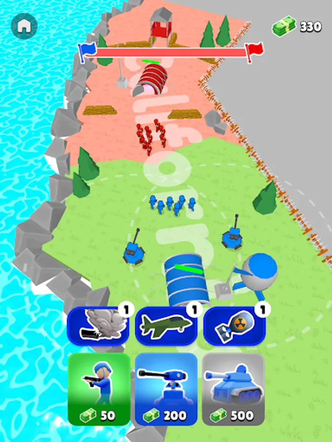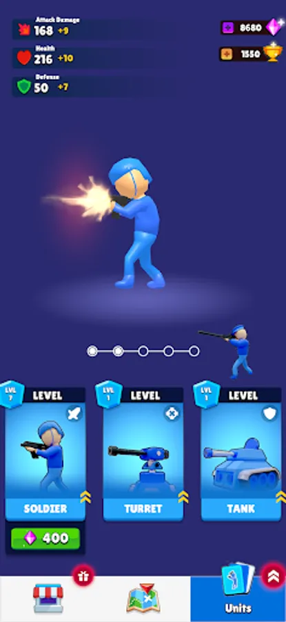 Command your troops and capture all the state! Challenge your mind and reaction. Choose between soldiers to strategize your attack and upgrade them with your looted gems to overcome your enemies.