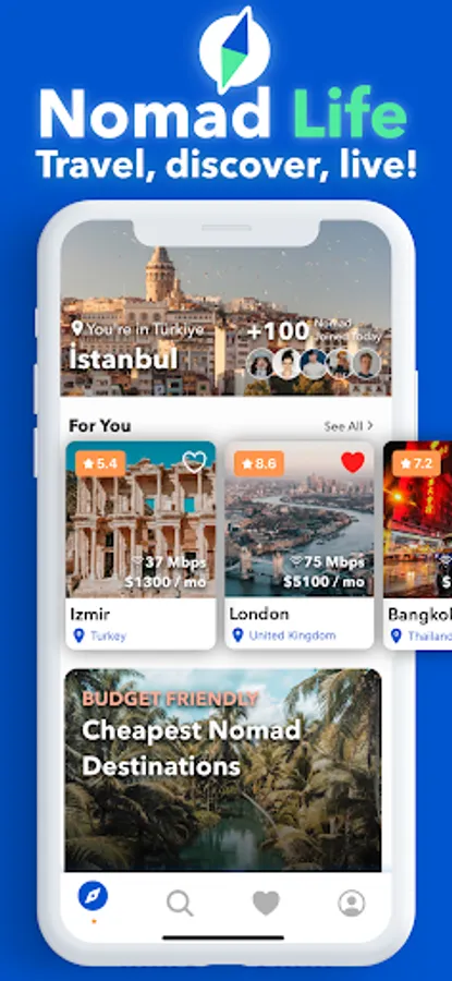 Nomad Life App is the perfect companion for anyone looking to live and work remotely and travel. Our app offers personalized recommendations tailored to your own travel and nomad style, with more than 1,500 cities and countries to discover.