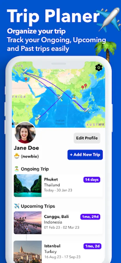 Trip Planner – Add your past, ongoing and upcoming trips to your profile and track them on the map. Quickly access your trips and prepare for your next journey.