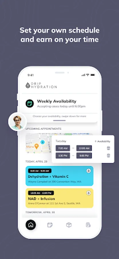 Providing patient care with NomadMD is an easy way to leverage your healthcare expertise to earn money when you want. Set your weekly schedule or turn on availability in a moment’s notice.