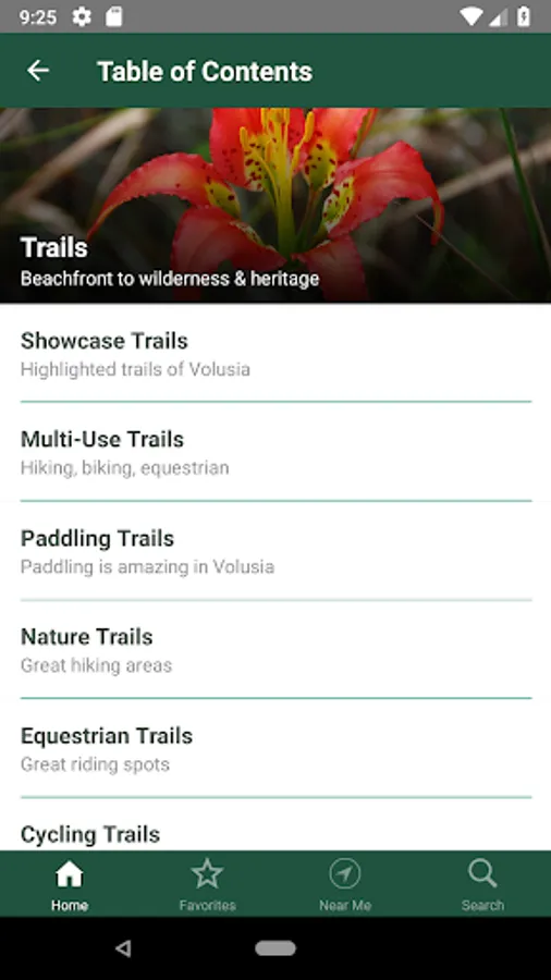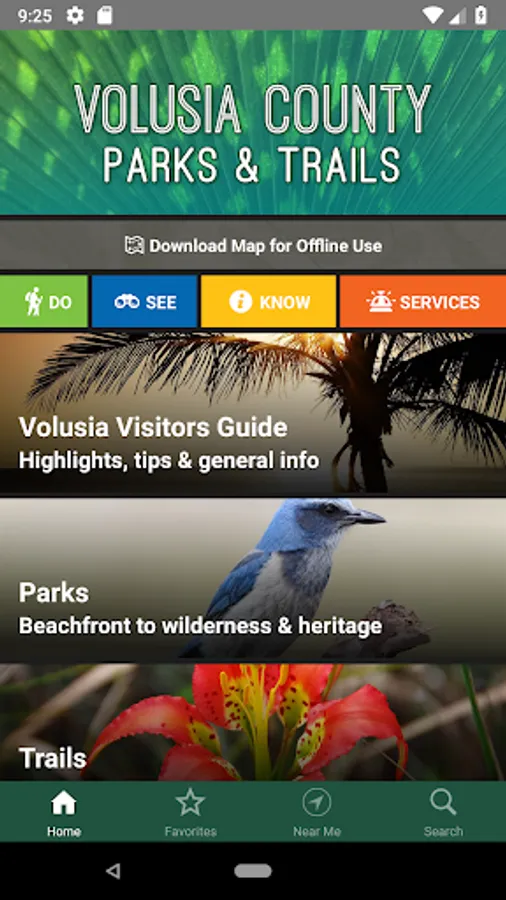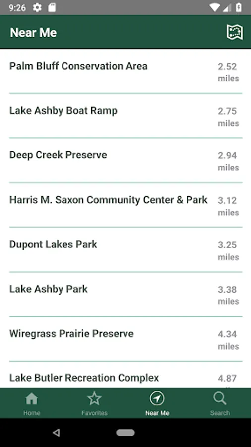 Near Me - This feature lists all sites closest to the user. Obviously, this works best when you are in Volusia County.
