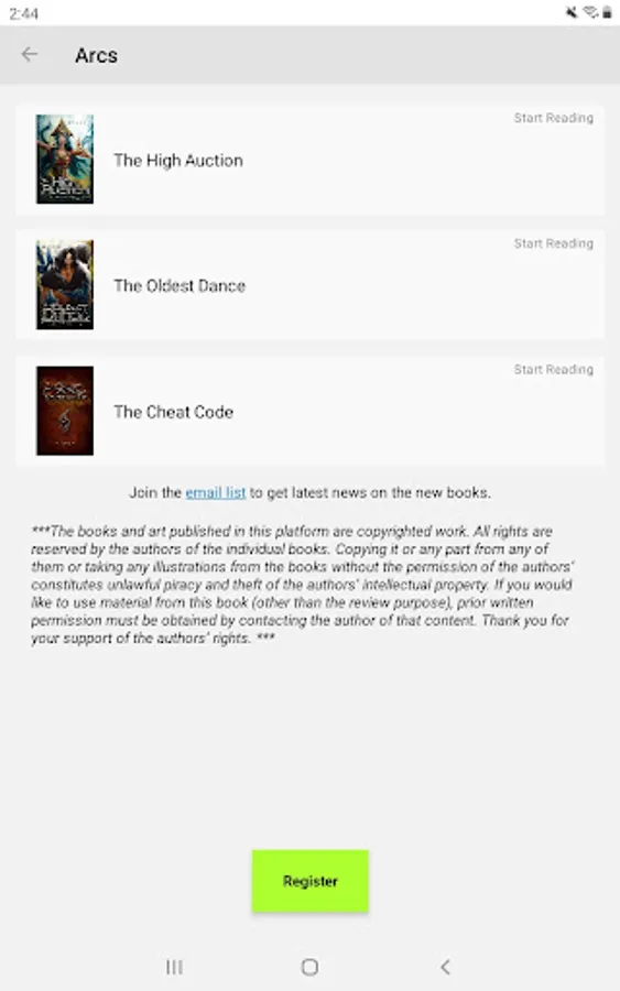 This is an ebook reader app to share eARCs. You don’t need to register to read sample chapters from new books. Just installing will allow you to start reading. You don’t need to maintain any profile on any website either. You can request any number of books you want. Apart from the usual reading experiences, this first version has: