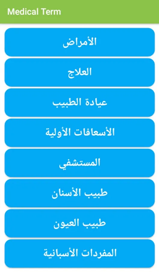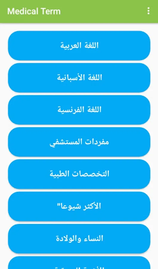 The application is a medical terminology that includes medical specialties, obstetrics and gynecology, pharmacy, nursing, medical laboratories, and a comprehensive aspect of the most common medical terms in the field of medicine.