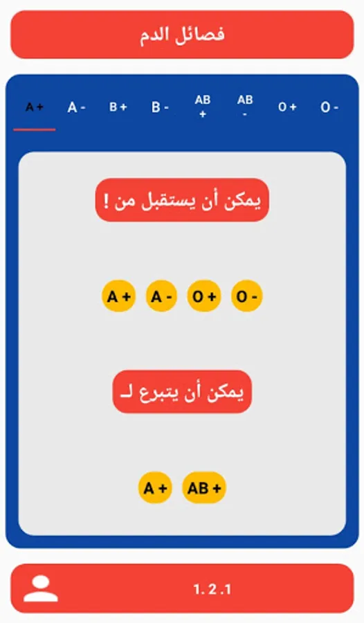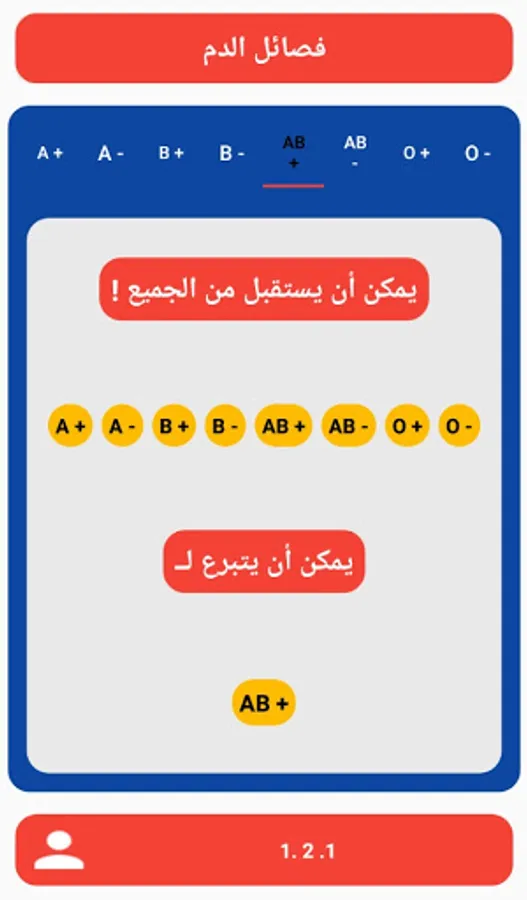 The application is a simplified explanation of blood groups and the method of receiving and donating blood