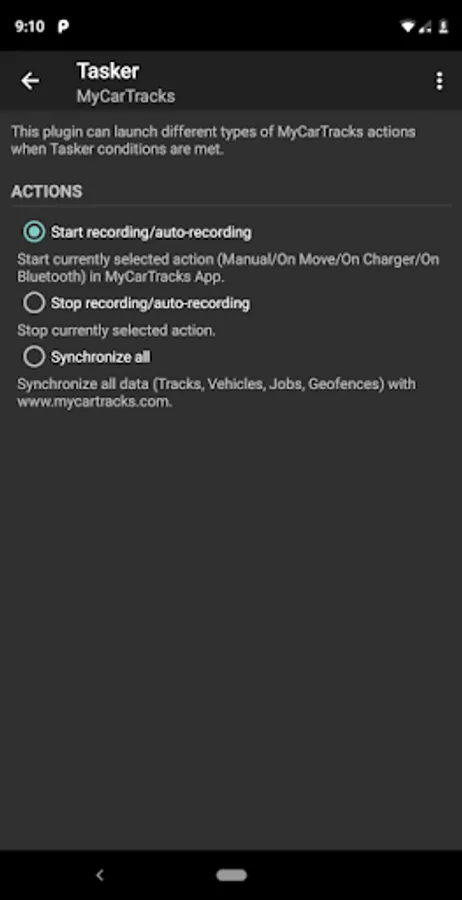 MyCarTracks Tasker Plug-in is a plugin for Tasker or Locale that allows you to execute specific MyCarTracks actions when Tasker or Locale conditions are met.