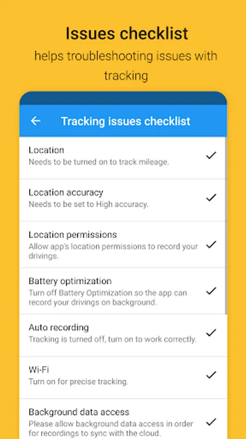 • Automatic mileage tracker with unique battery-friendly drive detection. Run once and put it in your pocket, it automatically records all trips throughout the day. No more manual mileage logs.