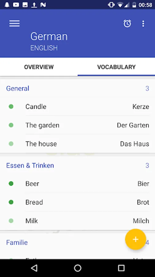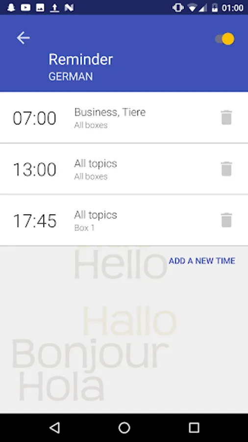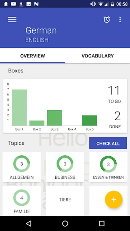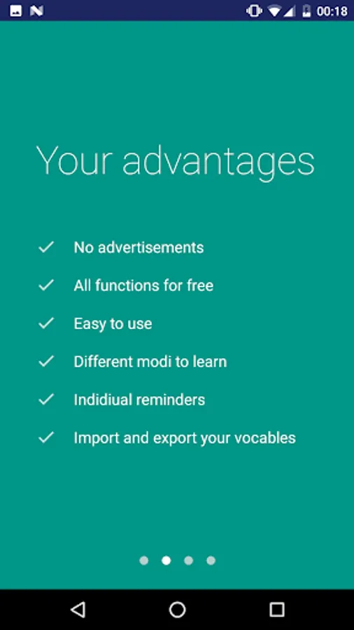 * A reminder which helps you stay diligent. You can manage the amount of vocabularies to check for each reminder as well as the time you want to be reminded at.