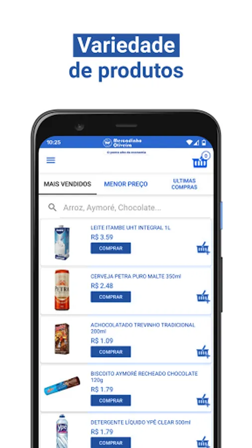 We developed an application for you to buy at Mercadinho Oliveira without leaving your home. Here you will find a wide variety of products to make your purchases!