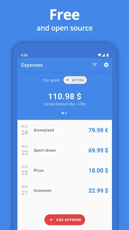 FREE: Expenses is designed to be free with no distracting ads. It is fully open source and supported by donors.