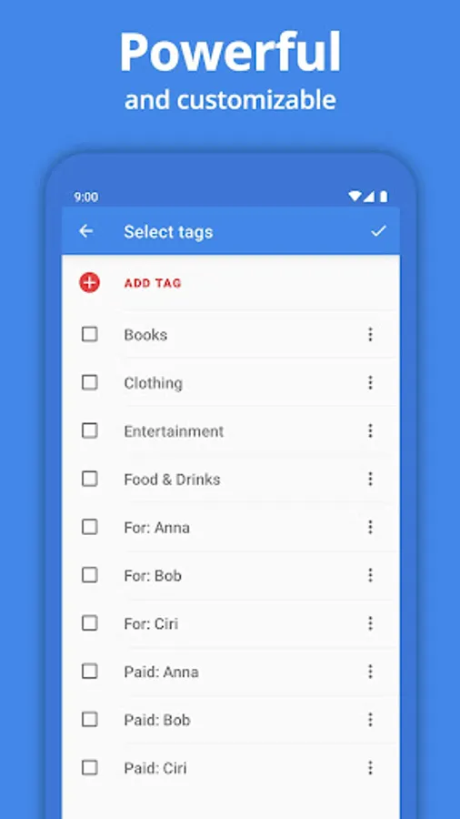 POWERFUL: Expenses gives you the power of managing your spendings by tags. Customize the app to your needs.