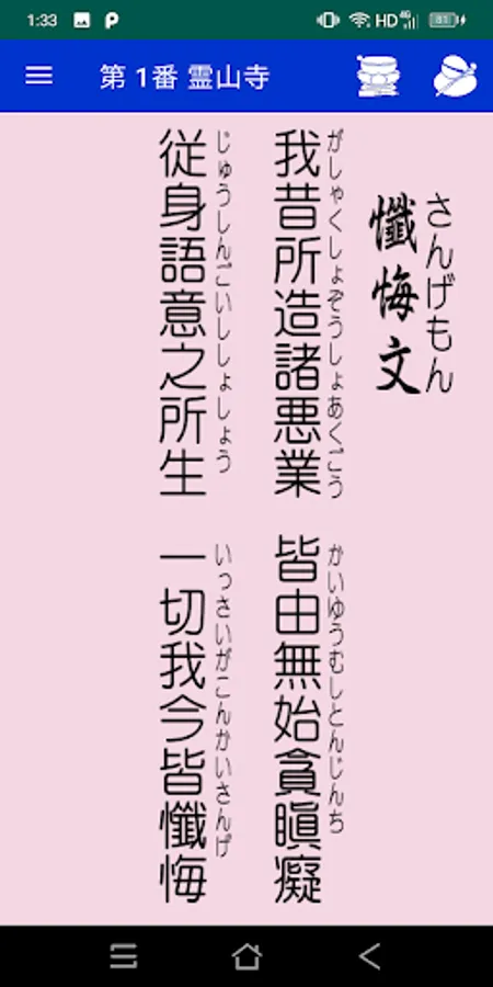 When you arrive at a temple, select a bill from the menu and the sutra will be displayed.