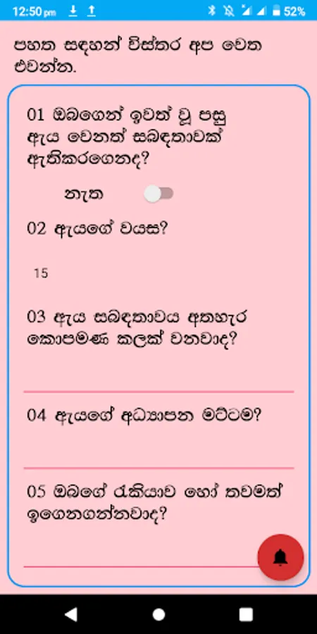 ඔබගේ සියලු සම්බන්ධතා ගැටළු විසඳන යෙදුමකි. ප්රේමයේ සත්යය වටහාගෙන සබඳතා ගැටලු විසඳා ගන්න. ඒක තමයි අපේ තාක්ෂණය. මෙම සේවාව ඔබට ඉක්මනින් විවාහ වීමටත්, ඔබේ ප්රේම සබඳතාවයේ ගැටලු ඉක්මනින් විසඳා ගැනීමටත්, ප්රීතිමත් ජීවිතයක් ගත කිරීමටත් උපකාරී වේ. අපගේ රහස්යතා ප්රතිපත්තිය බැලීමට මෙම සබැඳිය භාවිතා කරන්න.