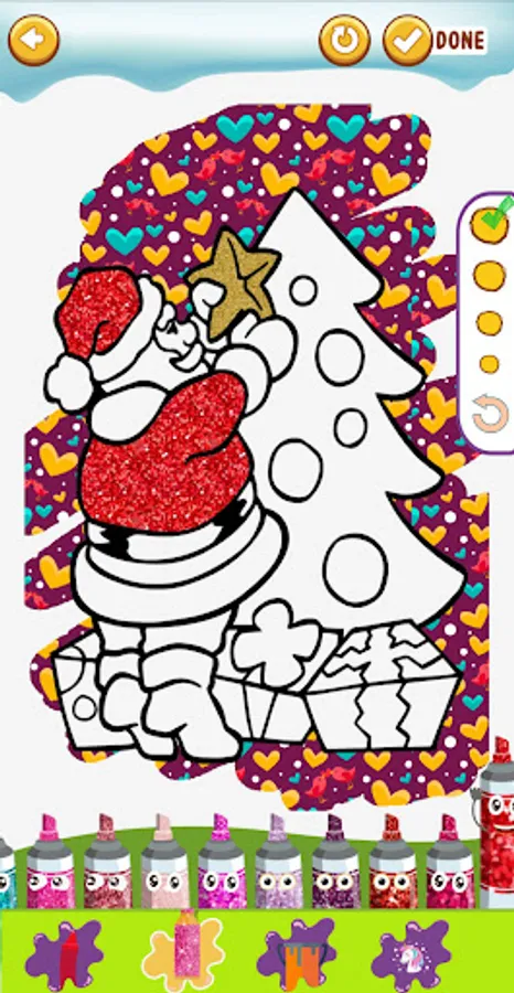 🎄 Lets play this joy full game and start coloring with many color option. Many Glitter Fx for Christmas glitter coloring page.