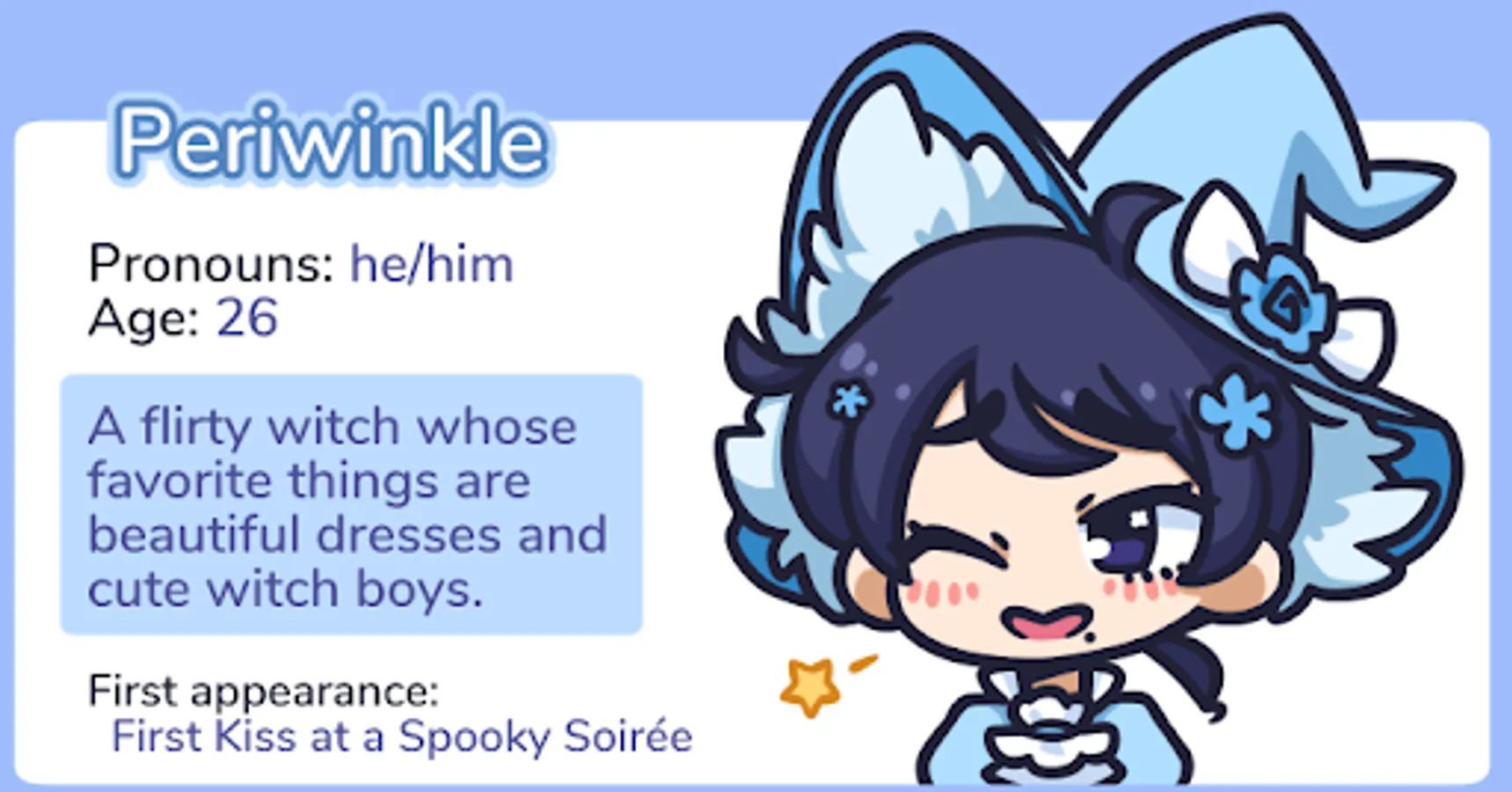 - dress up game! choose from 20 accessories to make periwinkle look extra cute for his dates!