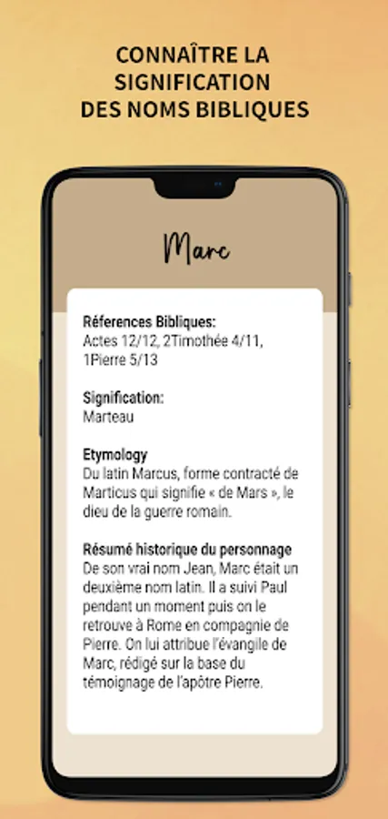 The application contains quite a few biblical names and their meanings. It compiles some of the best known, most phonetically pleasing, and most iconic.