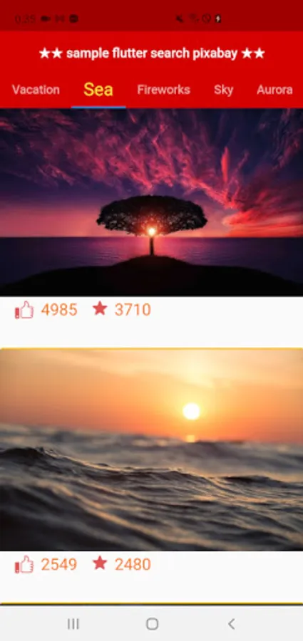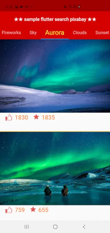 The sample program app created in "Let's make your first Flutter app (display it on the Flutter app using the Web API)" and "Chapter 7 Let's make an image search using the AIX (Pixabay) API!" is.