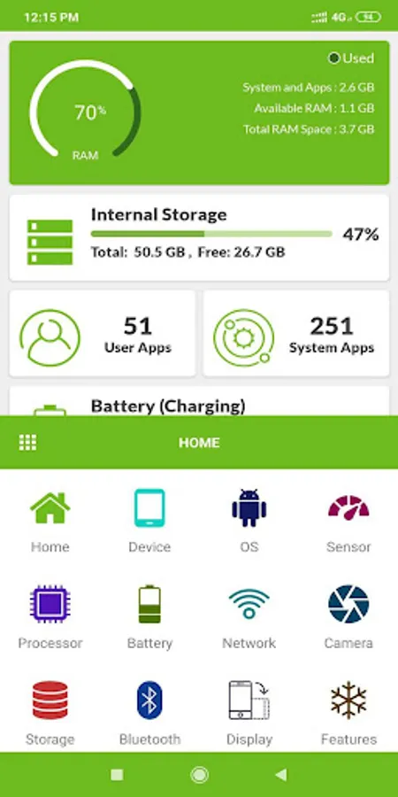 MyDev Info provides the most detailed Hardware and Software information available on your Android Device. Find all the details about your WiFi and mobile networks, including dual SIM info. See specifications for Bluetooth, GPU, RAM, storage and other hardware in your phone or tablet. Information about your mobile's operating system, architecture and many other details.