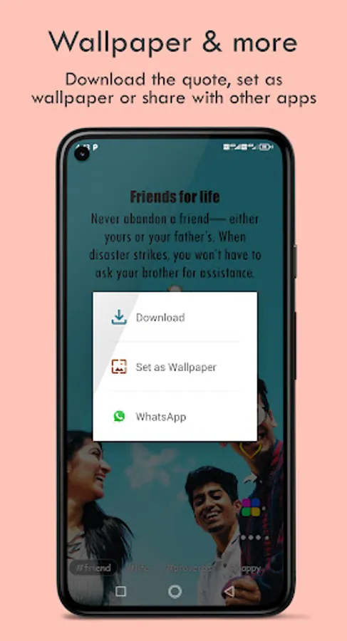 You can download any quotes to your device. Additionally there are options to Set the quote as Home screen wallpaper or Lock screen wallpaper or both.