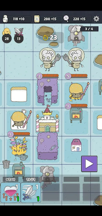 귀여운 디저트 캐릭터들과 함께 케이크 성으로 몰려오는 쥐들을 막아봅시다.