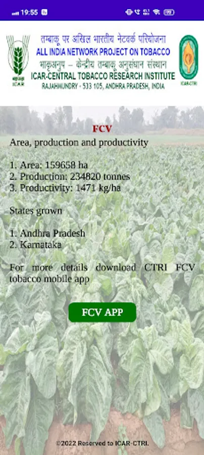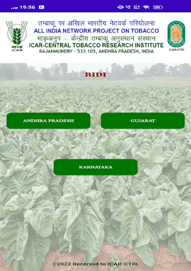 Tobacco is one of the important commercial crops grown in India. It contributes revenue generation to an extent of ~Rs 28000 crores including excise revenue and export earnings. Different tobacco types such as Flue Cured Virginia (FCV), Burley, Oriental, Bidi, Natu/ Pikka, Chewing and Rustica are grown under diverse agro-climatic conditions. To address the location specific needs of different tobacco types, the All India Coordinated Project on Tobacco was established by Indian Council of Agricultural Research during 1970-71 with the headquarters of the Coordinating unit at Anand (Gujarat). The headquarters was subsequently shifted to ICAR-CTRI, Rajahmundry, Andhra Pradesh on 16-08-1998. Further, the AICRP on Tobacco was renamed as All India Network Research Project on Tobacco and kept under the administrative control of the Director, ICAR-CTRI, Rajahmundry. A total of numbers of 14 centres (3 Main centres, 7 sub-centres and 4 voluntary centres) are functioning at present.