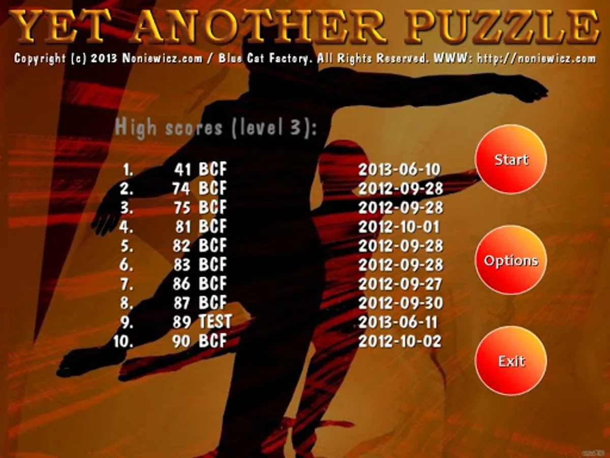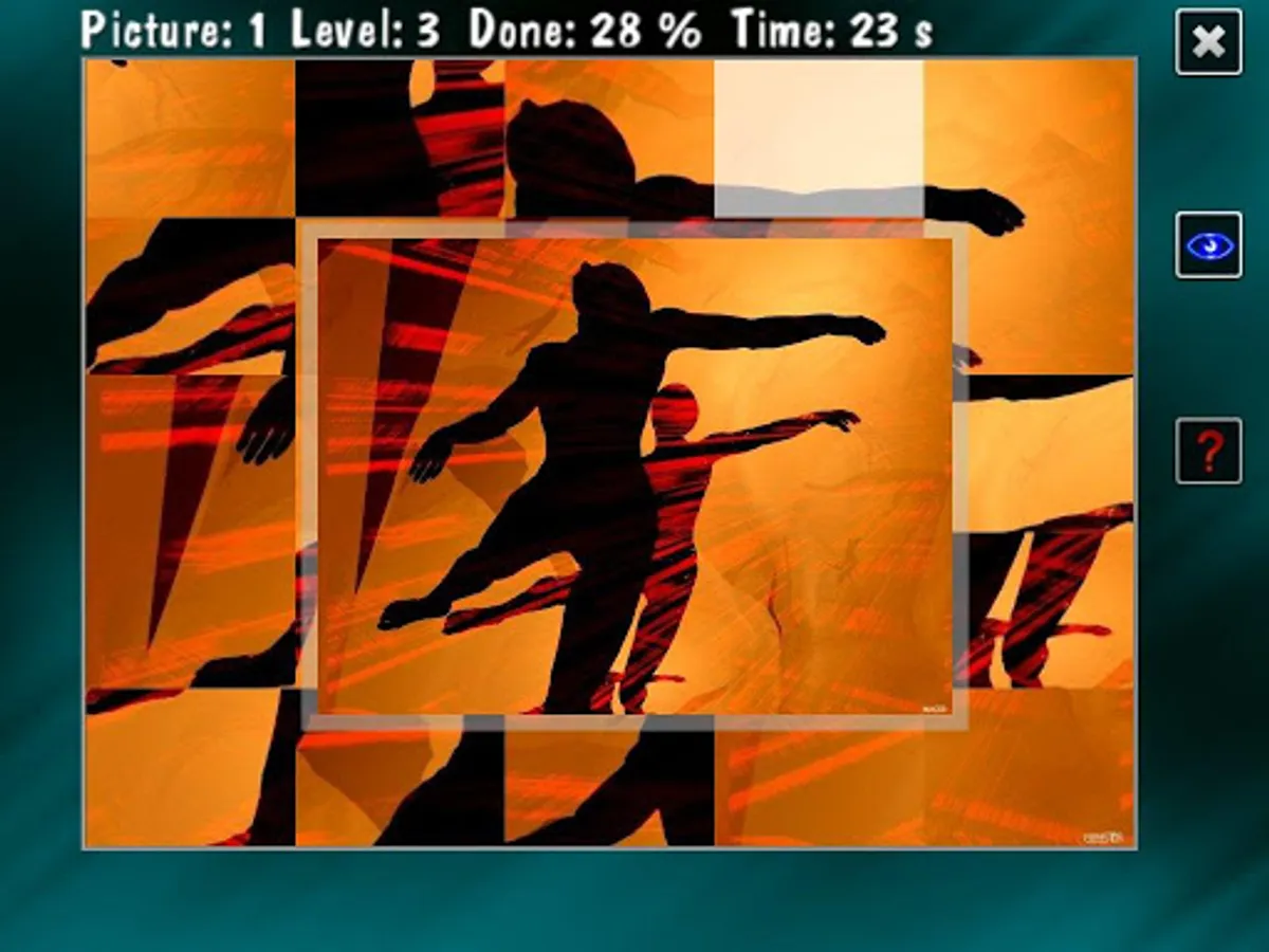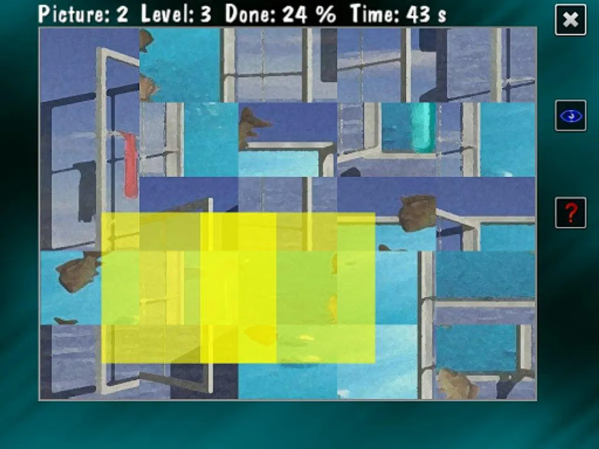 YAP stands for 'Yet Another Puzzle'. Yet another but quite cool - you can use your own images. The objective is simple - solve a puzzle as fast as you can. But the fun is real. If it seems too easy, try harder levels. You can select one of 10 built-in images to solve or copy own images to game folder and use them instead. You can select level - from easy where the image is divided into 3x3 tiles to hard 9x9 (a little less for Android). On Android you simply tap to select a tiles and slide it into different (possibly proper) place. When you move a tile into a new position the one that was there before swaps places with the moved one. When a tile is in its proper place you will notice a sound and golden flash. Note that tiles are not locked when they reach the right place, you have to develop a strategy to avoid unnecessary moves. Also there is in-game menu, with options to see an image preview and mark good or bad tiles for a while.
