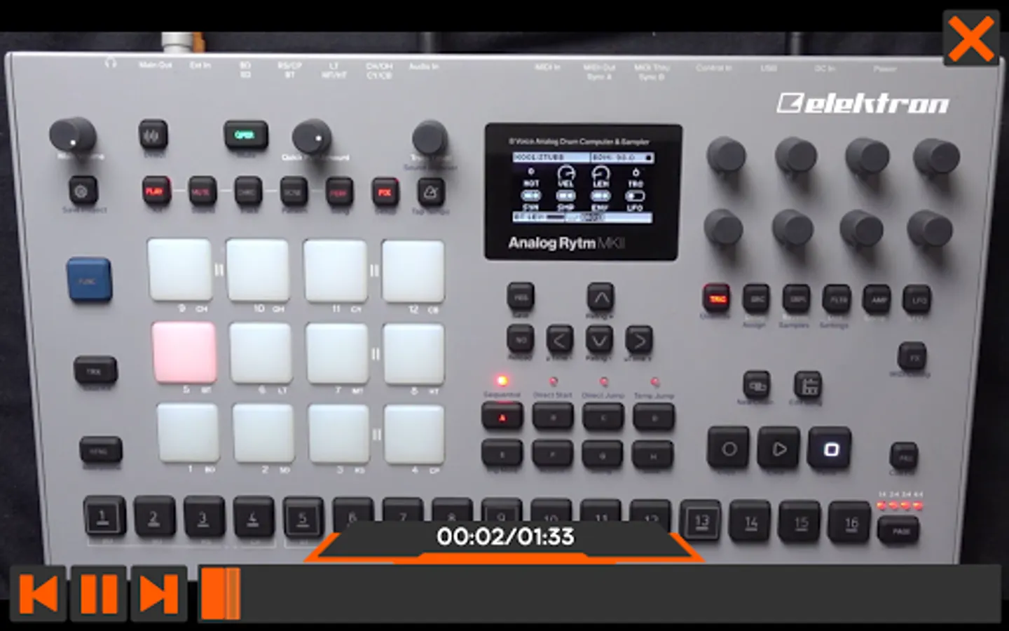 Next, Thavius dives right into the major new feature of the Analog Rytm MK2: sampling! After recording different sounds from his trusty OP-1 synth, he demonstrates how to get creative with sound design, and how to record patterns by playing the pads live, or by programming Elektron’s infamous step sequencer. Next thing you know, you’ll have your first beat blasting! You’ll also learn the best workflows and strategies to get the most of your Analog Rytm MK2, such as using P-Locks, Retrigs, micro timing, Copy/Paste techniques, how to tweak your song live with Scene and Performance modes, and a lot more.