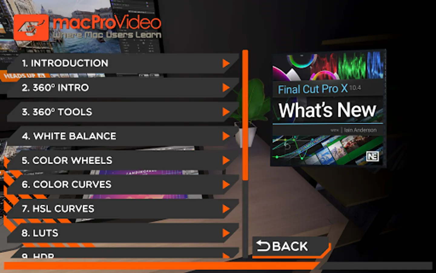 Iain begins the course by looking at one of the main new features of FCP X version 10.4: 360 VR video editing. You learn about the challenges of working with 360 video, and the tools available in FCP X to deal with those. You also discover the brand new correction methods, such as Color Wheels, Color Curves, and the HUE/Saturation curves. Next, Iain explains why Look-Up Tables (or LUTs) are more than color correction tools, and how you can use them creatively. Other changes in FCP X, such as High Dynamic Range support, the new HEVC (aka H.265) codec, iMovie for iOS compatibility and the new redesigned Logic audio plug-ins are also covered.