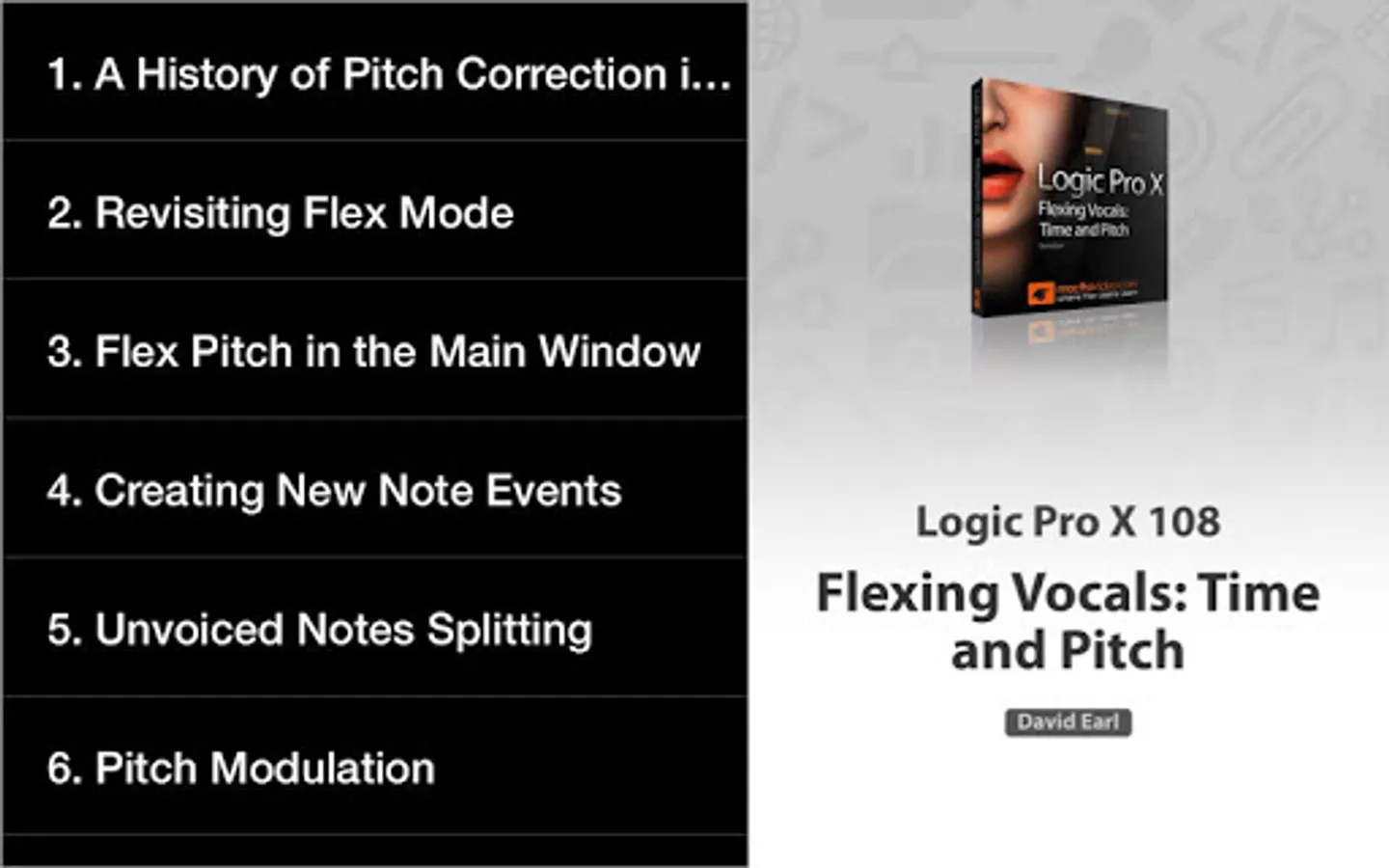 Focusing on how to use Flex Pitch with vocals, this course starts with a history of pitch correction in Logic. Next, you learn how to identify problem areas with your vocals, and correct the singer's pitch, gain, and formants. Then the course demonstrates useful vocal concepts like doubling vocals, creating harmonies and creative Pitch Drift techniques. Logic Pro X adds a new "Flex Pitch" feature that lets you tweak vocals to make a perfect recording. It's a cool new addition to Flex Time— and David Earl dishes out its secrets in this new Flex Vocals Course.