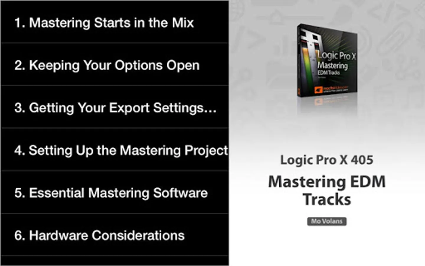 Learn mastering with UK-based mastering engineer Mo Volans as he takes on finalizing an EDM track using Logic Pro X in this in-depth, 34-tutorial course.