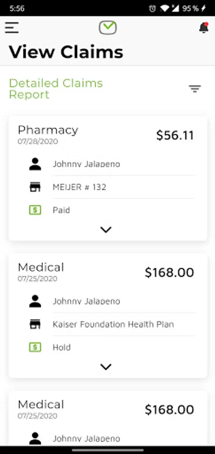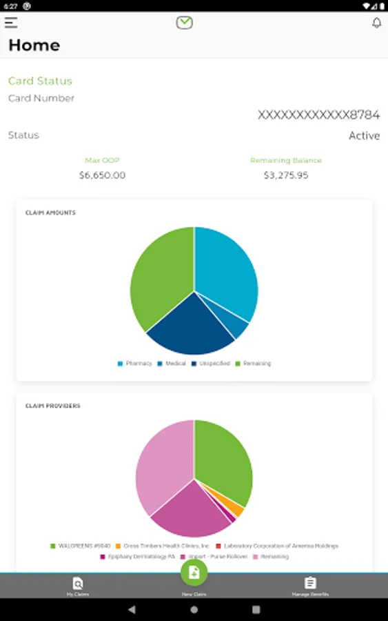 -View all charges on your Visa card, all claims reimbursements, and all payments made to providers on your behalf.