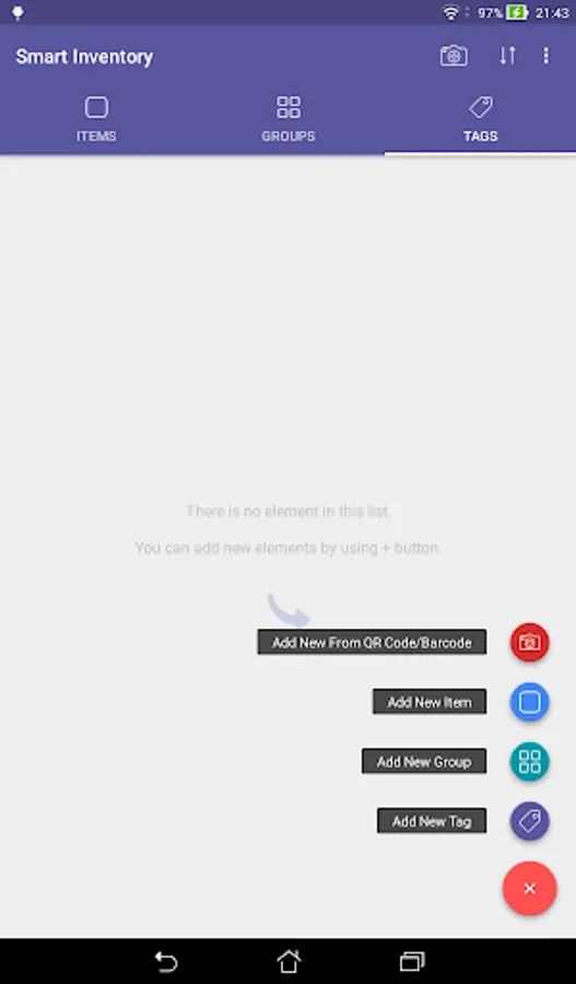 - Create new items, groups and tags manually and print their related QR codes which are produced by the system. This QR Codes can be used for tracking the objects via scanning feature.
