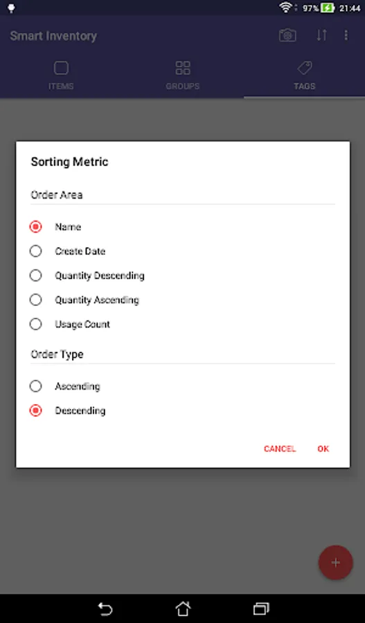 Groups: Gives you to ability to group your objects via their similar attributes. For example their location, size, shelf number, or even the buyer name.