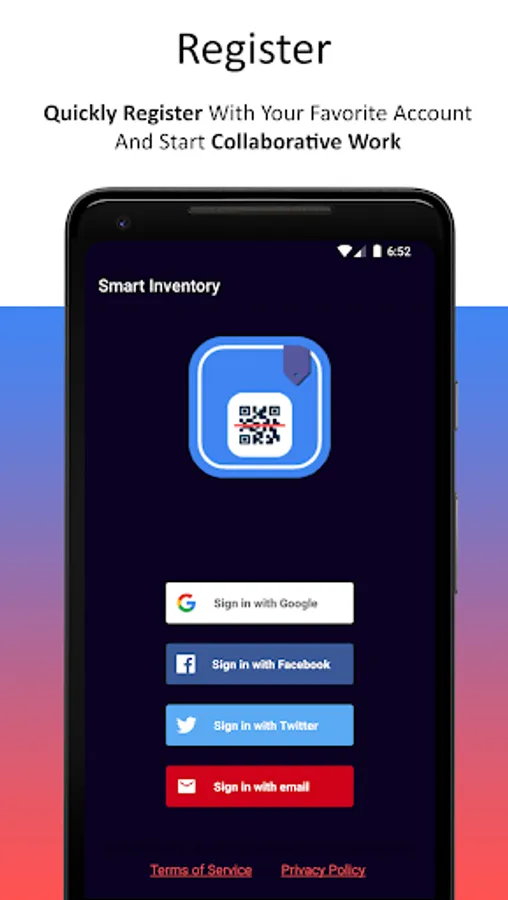 - Register to our system via Google, Facebook, Twitter or your email and reach your inventory via our web application.