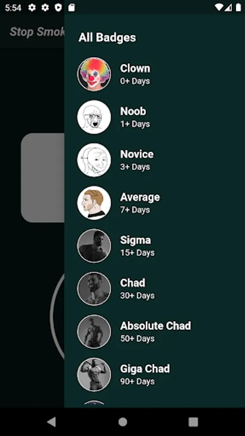 STOP SMOKE app does the same. It counts no-smoking days and gives different badges accordingly. These badges will motivate people to quit their addiction.