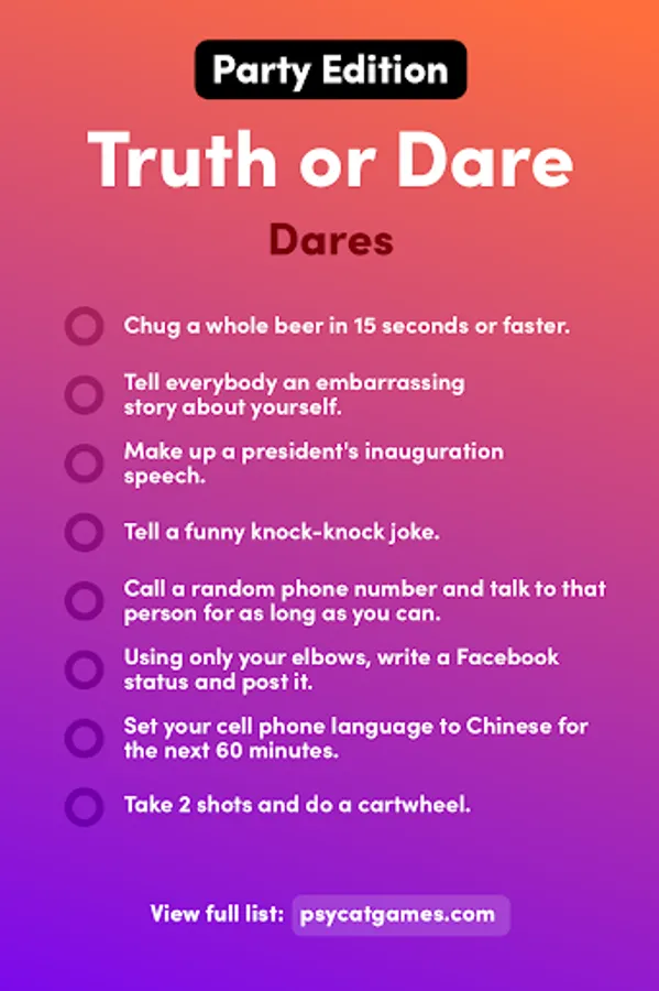 Truth or Dare is one of the all-time classic party games—and a great way to get to know your friends better.