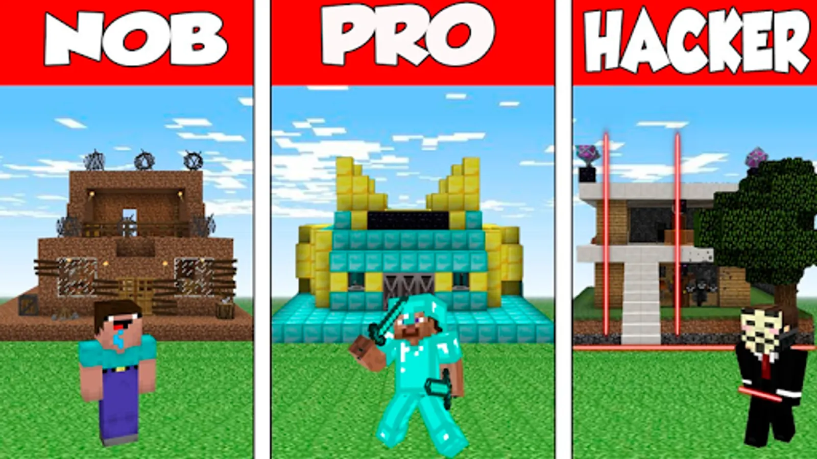 Noob vs Pro vs Hacker vs God for Minecraft PE is a very popular roleplay adventurous game to start a battle with your player favourite. The most popular monster school minecraft series.
