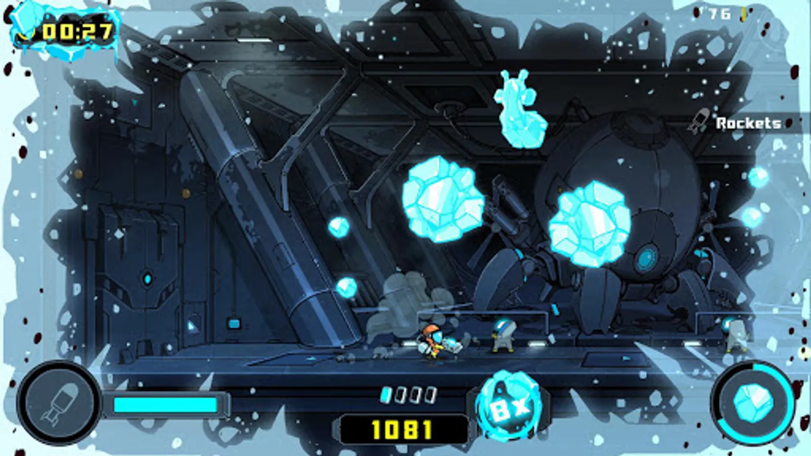 Harry’s current assignment takes him to the infested futuristic research facility on planet Zoit. The surviving and dwindling number of scientists employed him for his slaughtering skills. Harry’s mission: survive until the decontamination of the building is complete, hoard coins like his life depended on it, and protect the scientists at all costs. Watch out for the spiders as they have a particular fondness for rubber encased scientists. After landing, you will move from room to room through the facility blasting rockets, lasers, and wielding the power of lighting upwards at anything not human.