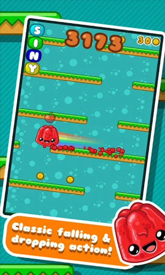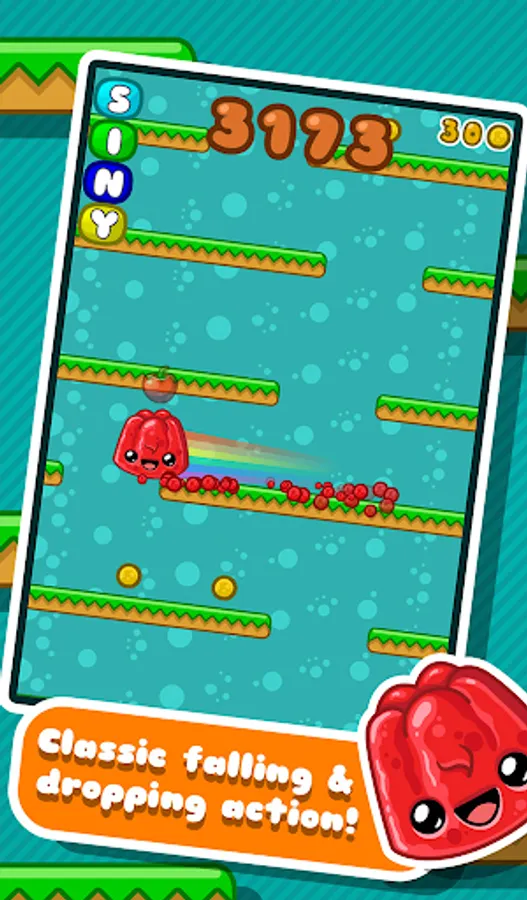 Join a cute family of Jelly and Ice Cream characters on an exciting journey. Drop safely between the platforms to fall down deeper and deeper.