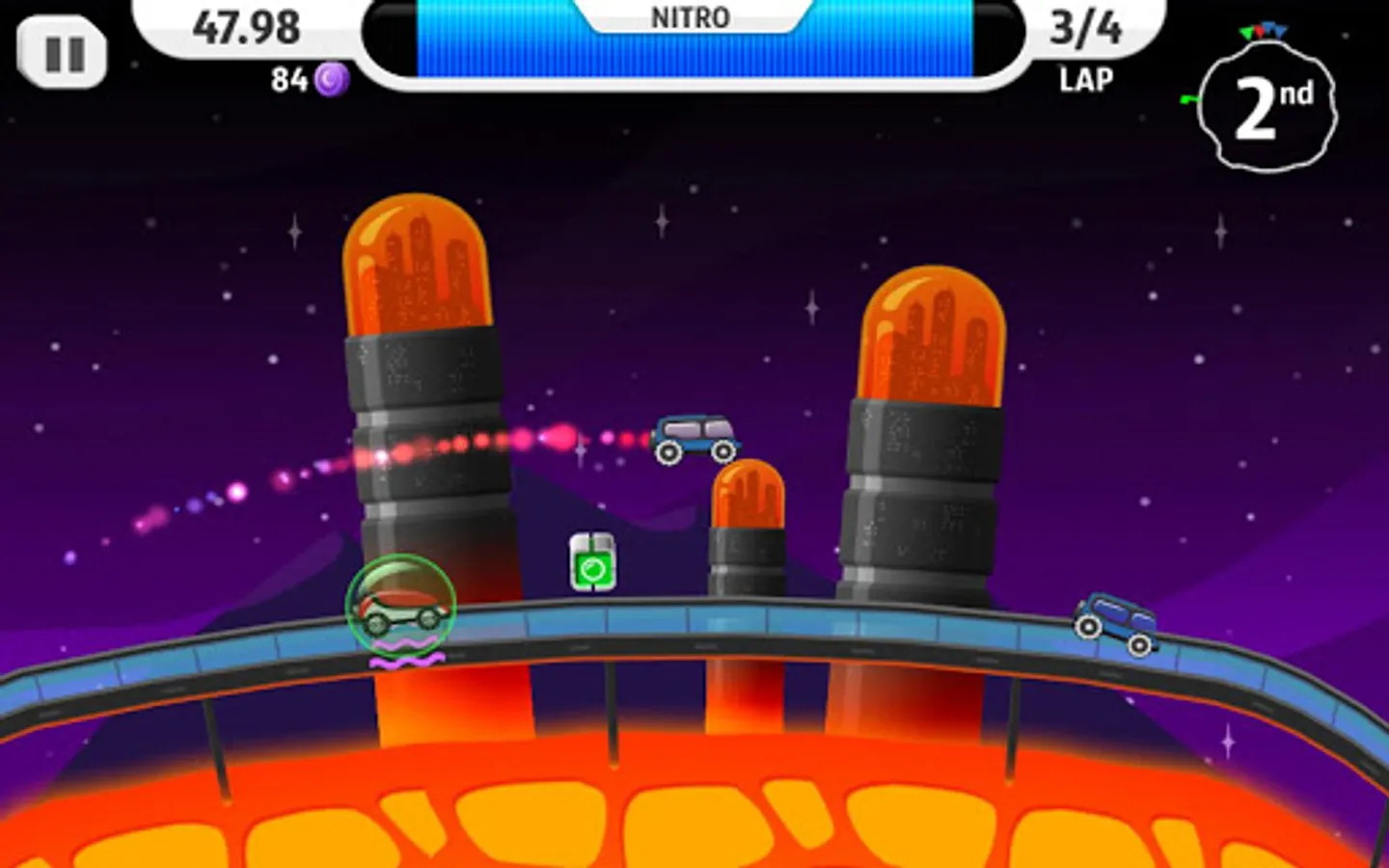Shoot, dodge, blast, and nitro boost your way through the solar circuit. Achieve the ultimate prize and conquer the solar system by beating any competitor in your way!