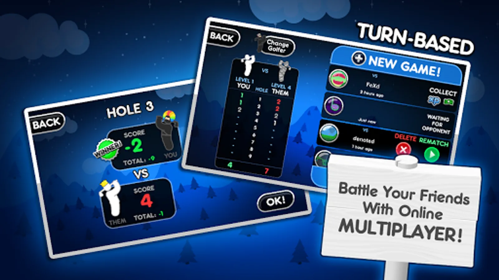 Turn Based Multiplayer. Challenge golfers from all over the world to Turn Based multiplayer fun! Challenge random opponents or use the NEW Username Search to challenge your friends directly.