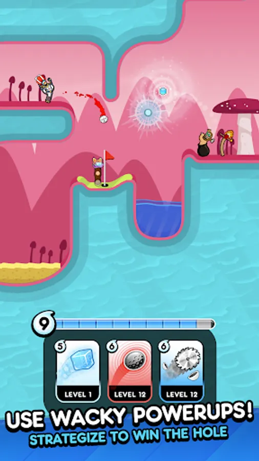 Play on some of the most wildly creative courses ever imagined. Customize your golfer and pack your bag with all sorts of power-ups like sticky balls, grenades, lasers and more.