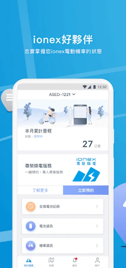 When charging, you don't have to wait in place, use the core power to continue moving, and you can check the current battery charging status on the Ionex App. After charging, return to the charging place to get the battery back, and you can continue to the next with full power. direction forward.