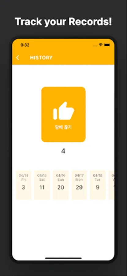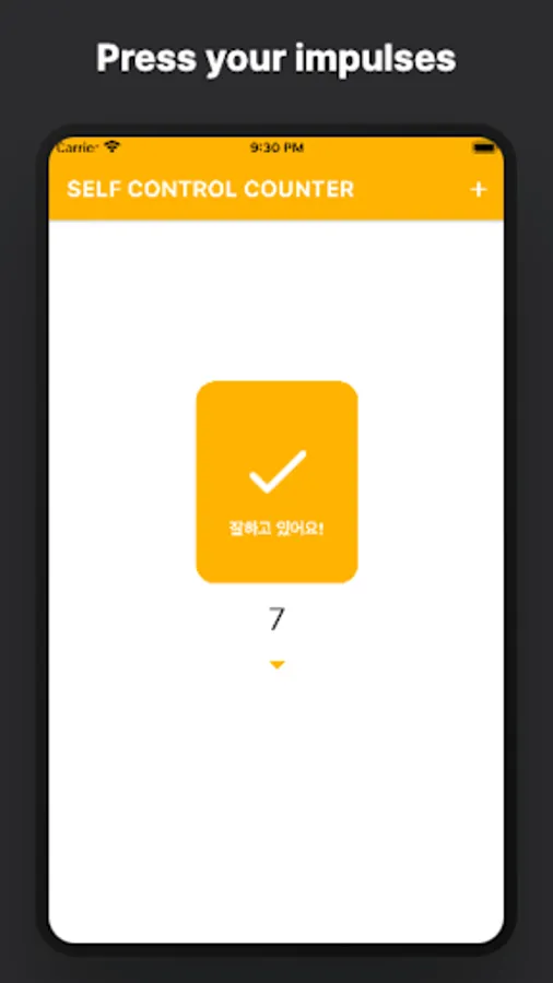 당신이 어떤 행동을 제어하고 싶다는 목표가 있다면 앱에 항목을 추가할 수 있습니다. 그 행동을 참아낼 때마다 카운터를 누르면 기록이 저장되며, 이를 통해 얼마나 스스로를 제어해왔는지를 확인할 수 있습니다.