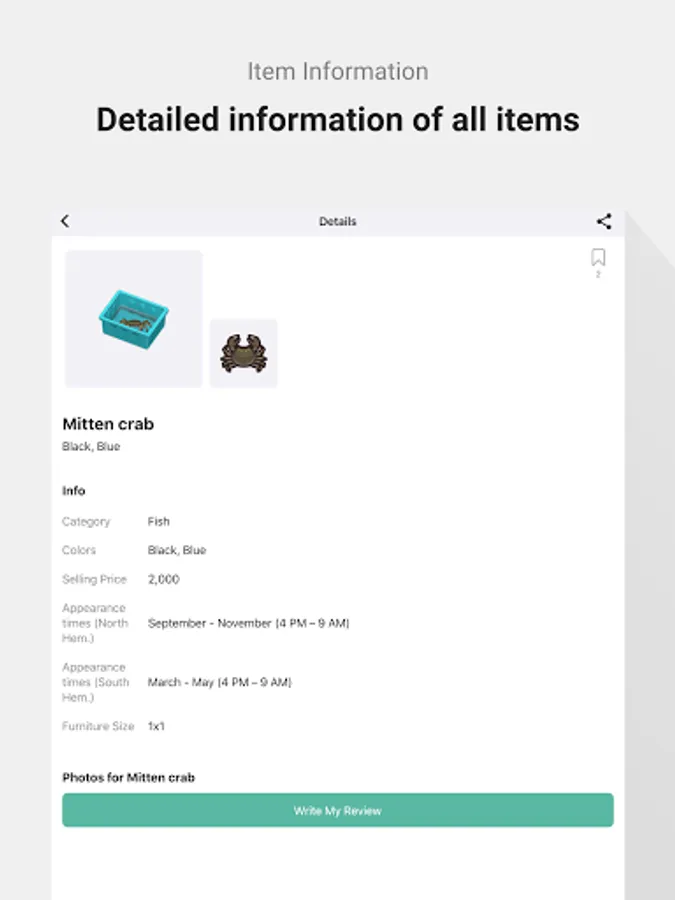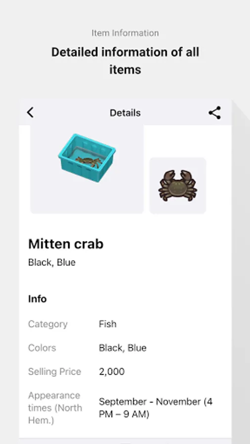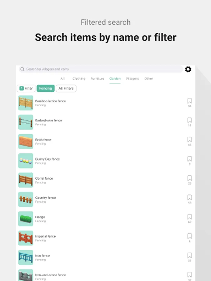 Detailed information on all items such as fish, fences, etc.