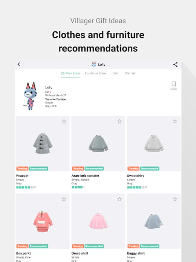 Recommendation based on villagers' preferred color and style