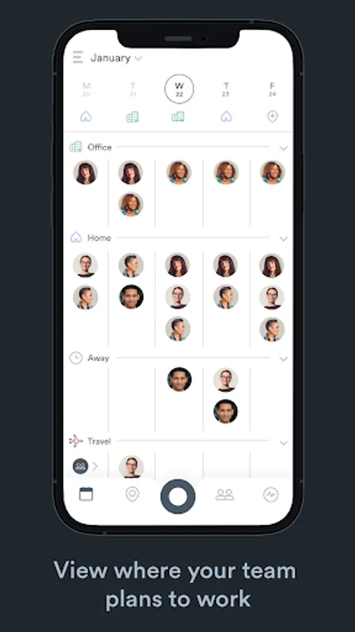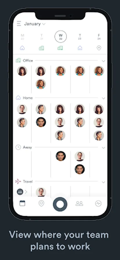 Set and view work locations: Know when other team members are going into the office by viewing where they plan to work each day.